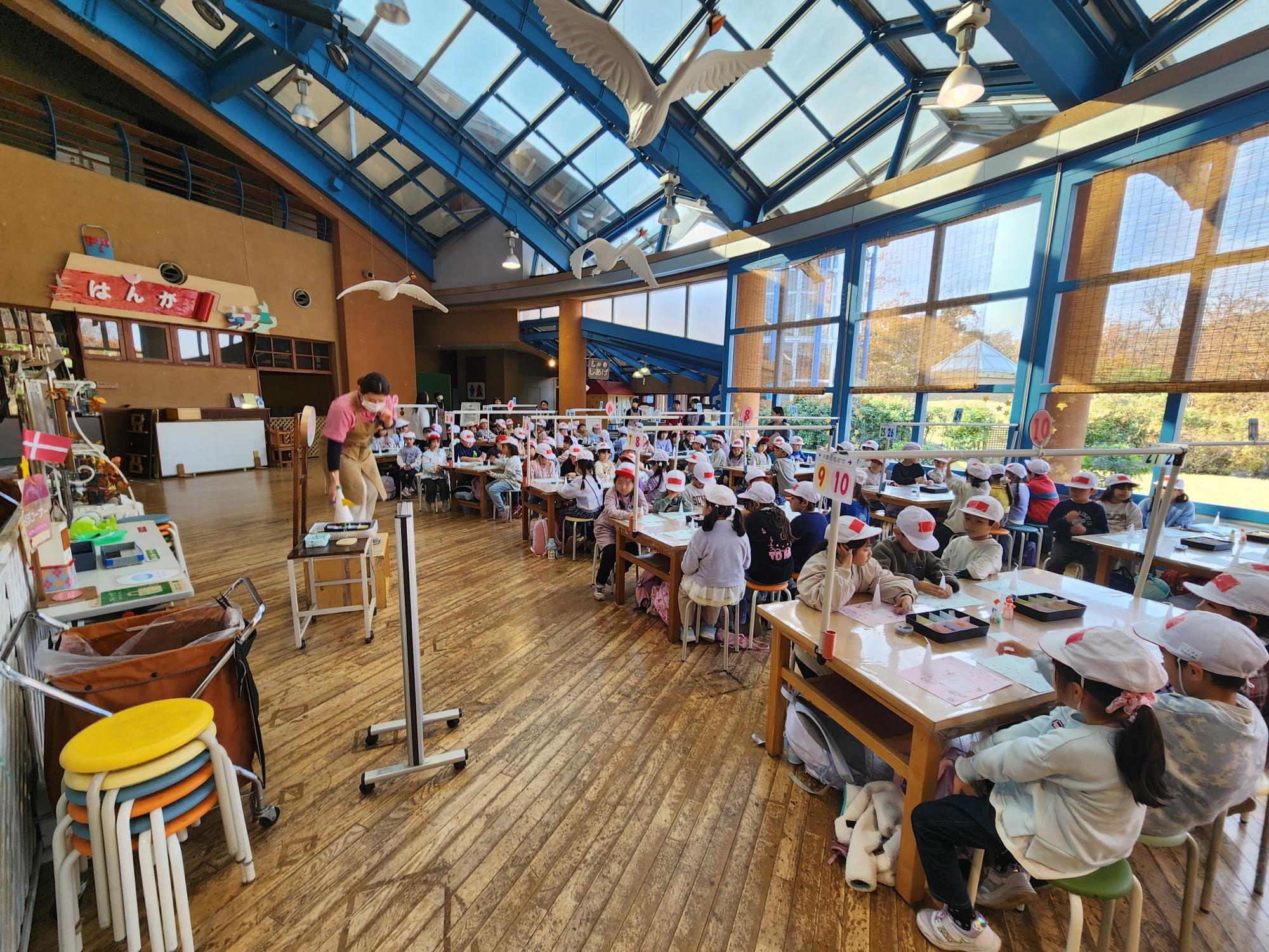 27日(木曜日)、1年生は、校外学習でアンデルセン公園に行きました。この日は、11月にしては温かく、良い天気に恵まれました。園に到着すると、クラスごとの集合写真をとり、すぐに活動をスタートしました。まずは、グループ活動。事前に計画したものをもとに、各グループ、時間を見ながら楽しく遊びました。この日の団体での来園者が少なかったこともあり、様々な遊具が十分に使うことができました。活動が始まると、『〇〇さんがいません』『計画したけど、遊びたい物の意見が分かれてしまい…』などのトラブル発生。先生方は、なるべく手を貸さずに、自分たちで解決していけるよう、温かく見守っていました。午前の活動が終了するとお昼。芝生広場で、グループごとに食べました。午後は、「ろうそく作り」に挑戦しました。指導してくださる方の話をしっかりと聞いて、一生懸命製作しました。1年生にとって、小学校での初めてのバス旅行。すべての活動を終了してバスに乗り込む時、「楽しかった」「もっと居たい」などの声が聴かれ、担任の先生方もとてもうれしそうでした。