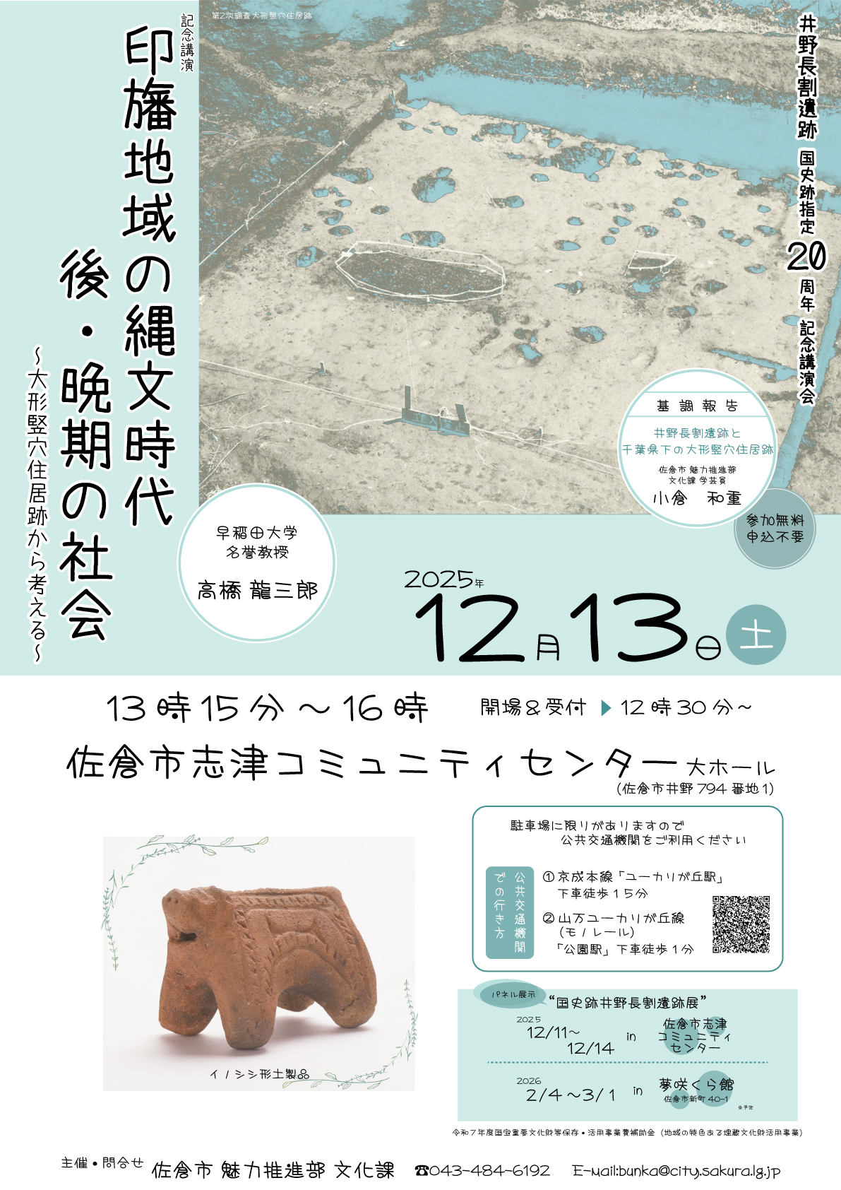 ”印旛地域の縄文時代後・晩期の社会”(井野長割遺跡国史跡指定20周年記念講演会)