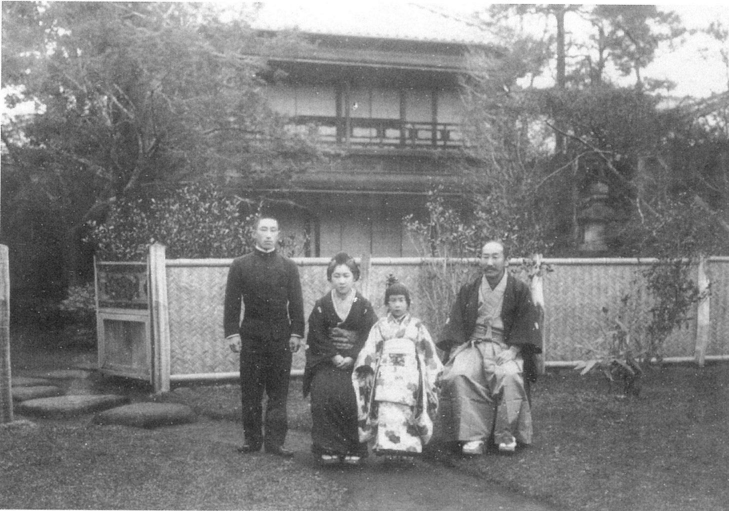 網代垣を背景に撮影された堀田正倫家族写真(菅谷義範氏蔵)