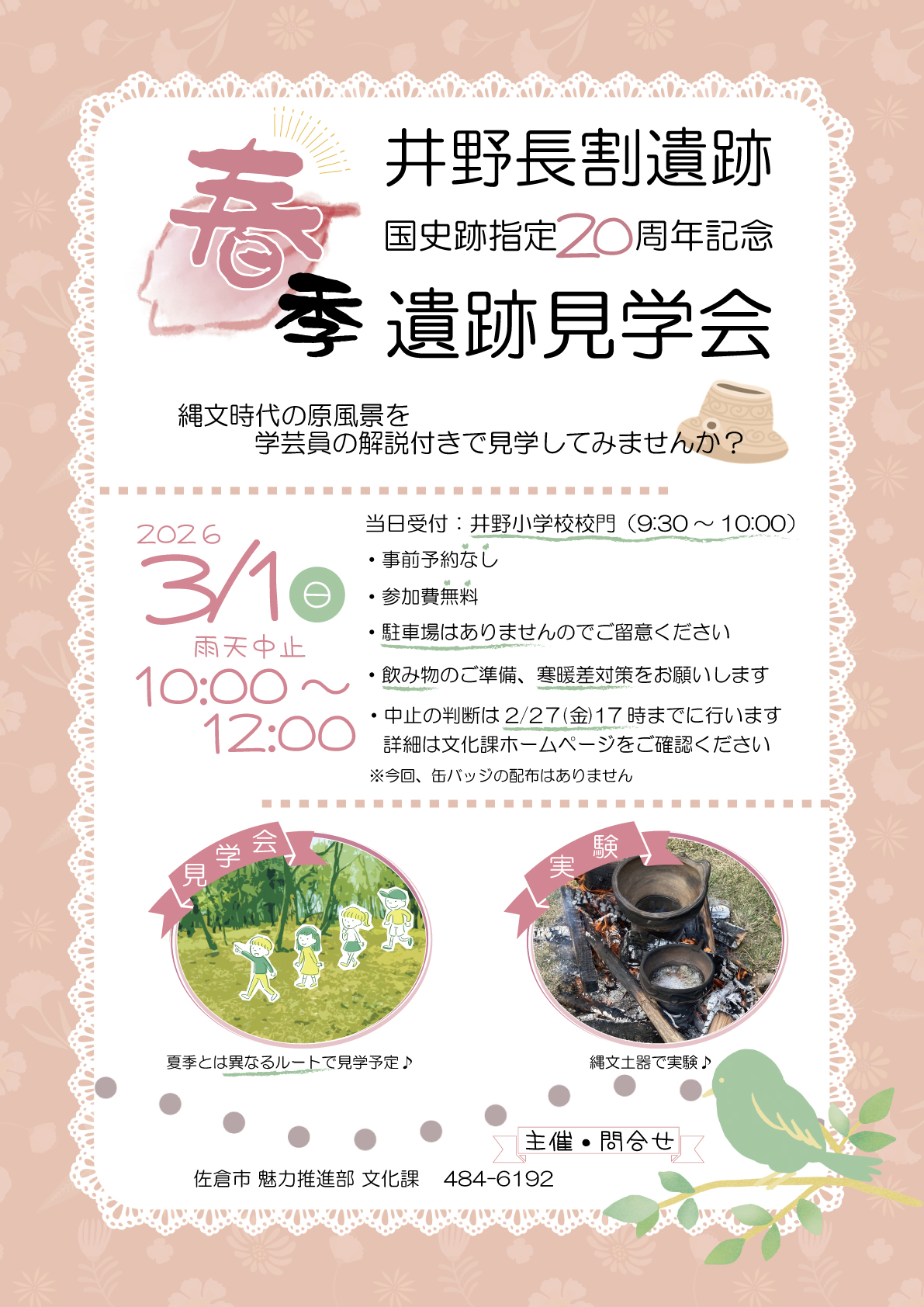 井野長割遺跡国史跡指定20周年記念春季遺跡見学会を開催します