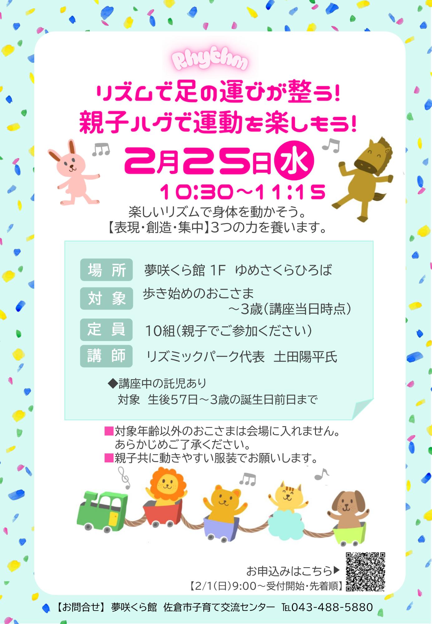 2月25日水曜日 『親子でリズム体操』 ※2/1日曜日9時~申込み開始