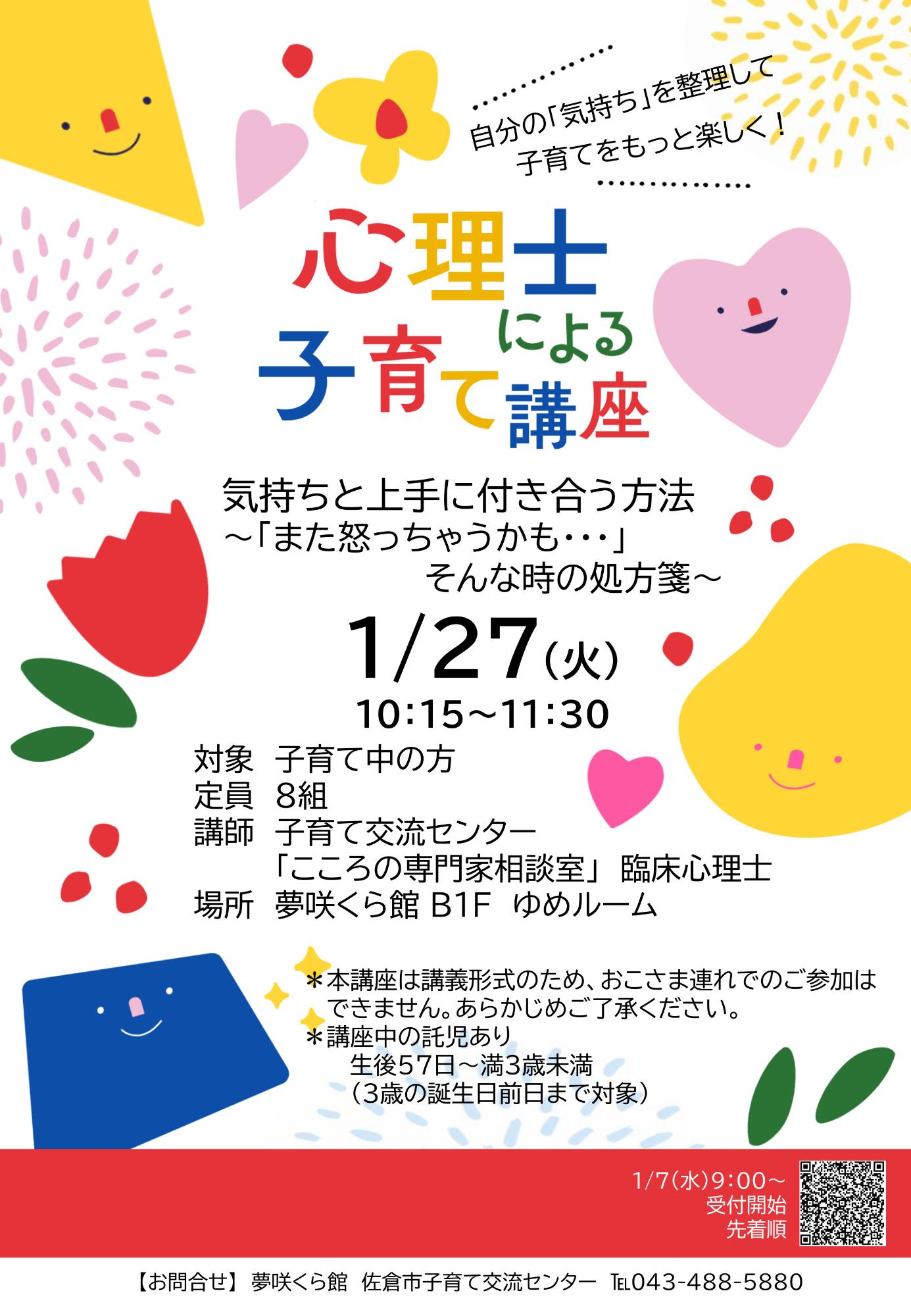1月27日火曜日 『心理士による子育て講座』 ※お申込み受付中