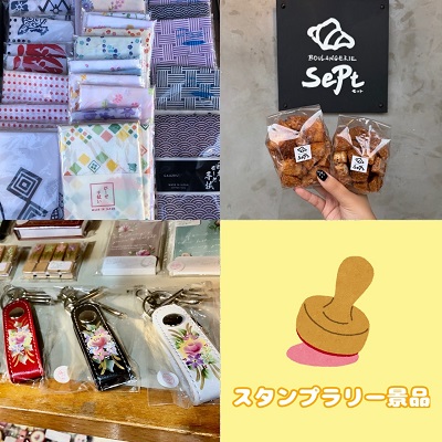 エリア内の対象店舗10か所のうち、4か所をめぐり、スタンプを押すと景品がもらえます。